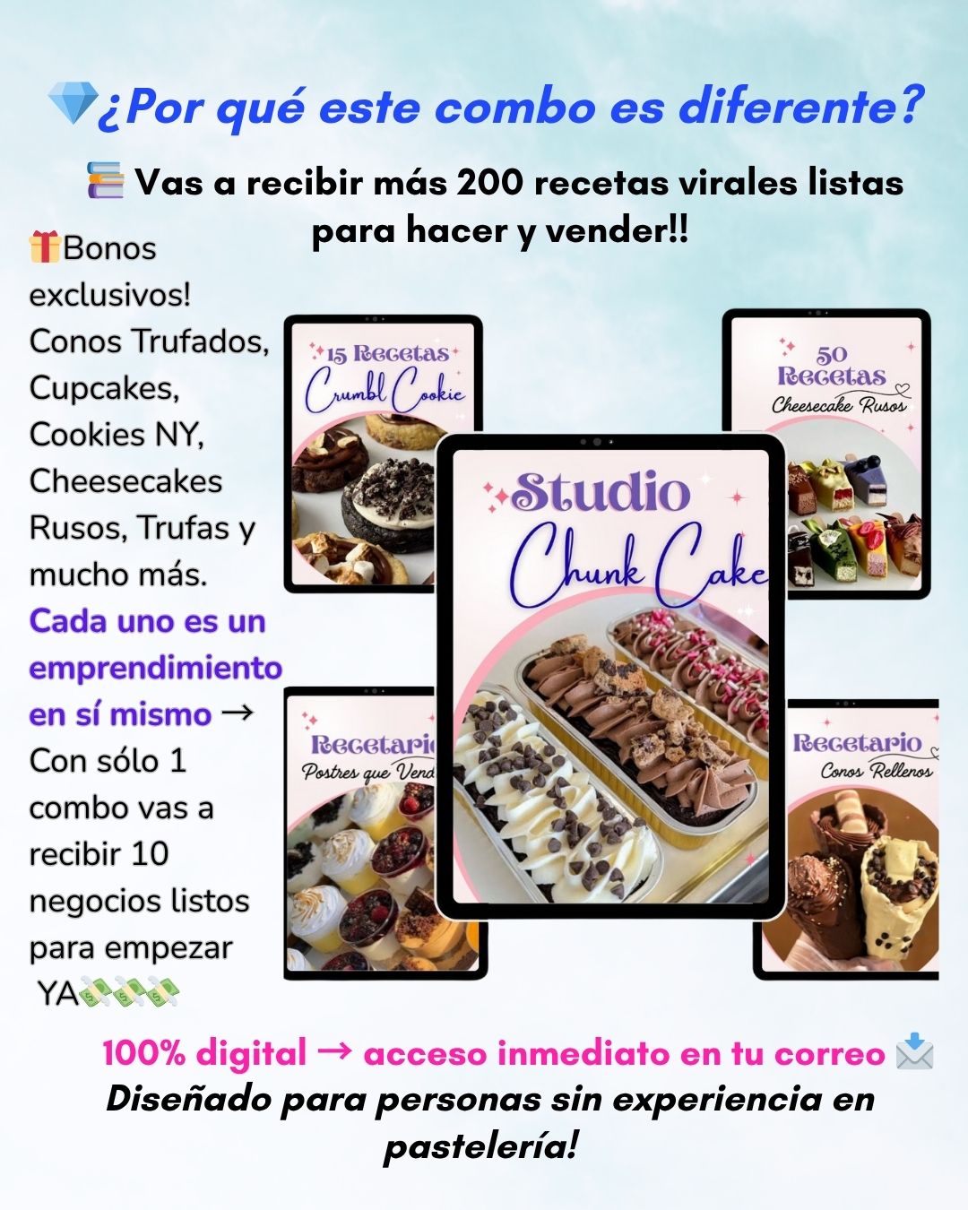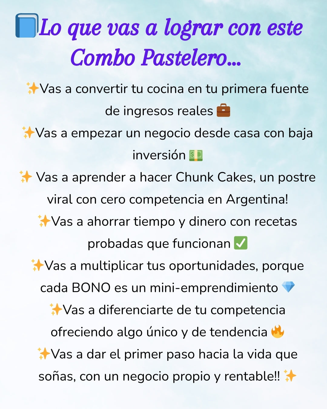 💎 Por menos de lo que cuesta un paquete de galletas, llévate el Mega Combo Pastelero con más de 200 recetas y 9 BONOS exclusivos para empezar tu negocio desde casa 🚀